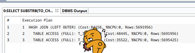 FROM (SELECT * FROM V$SQL_PLAN WHERE SQL_ID = '5kgtcxs7zn57k') /* 여기에 SQL_ID를 입력 */